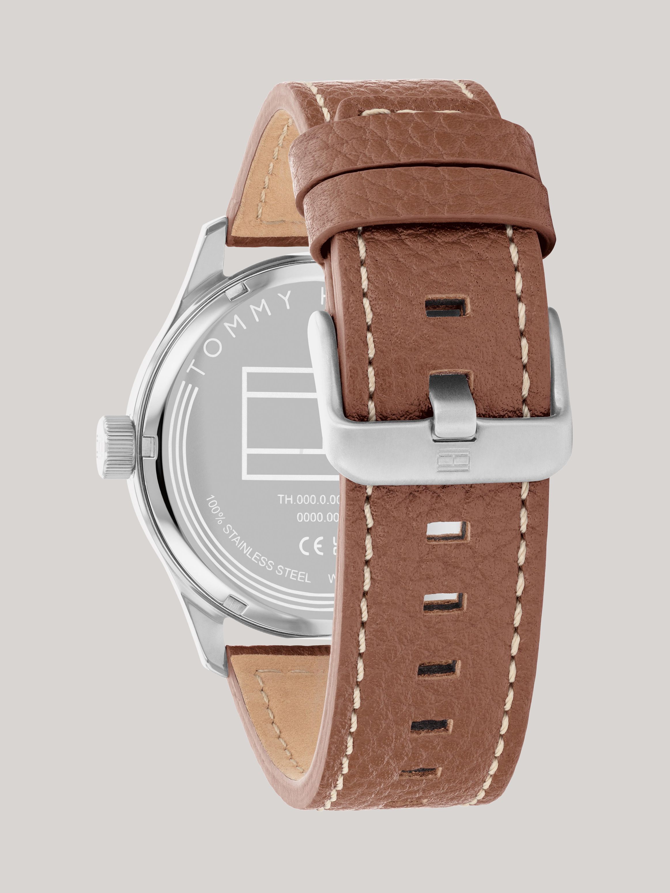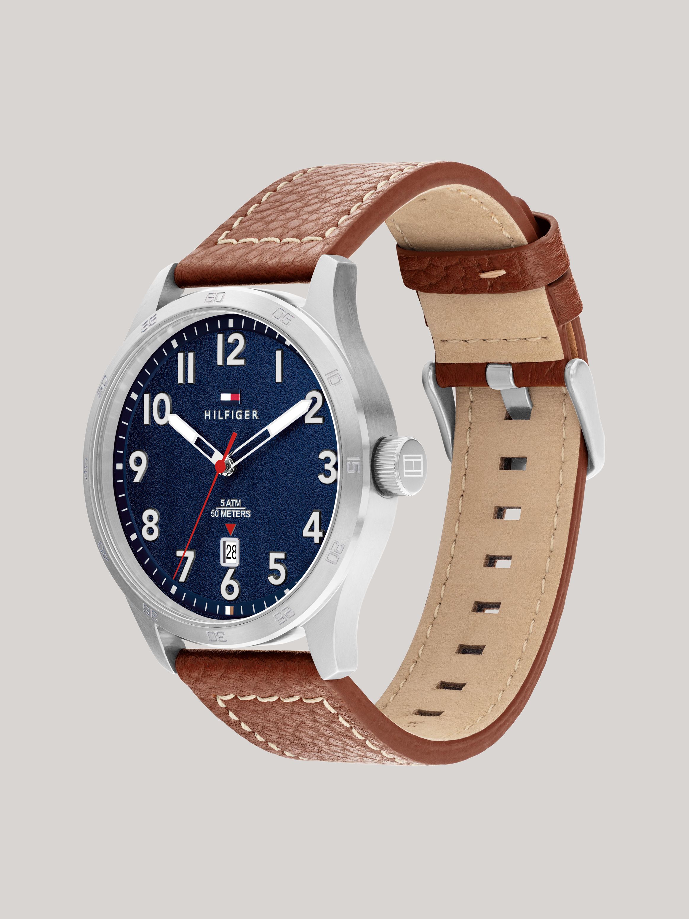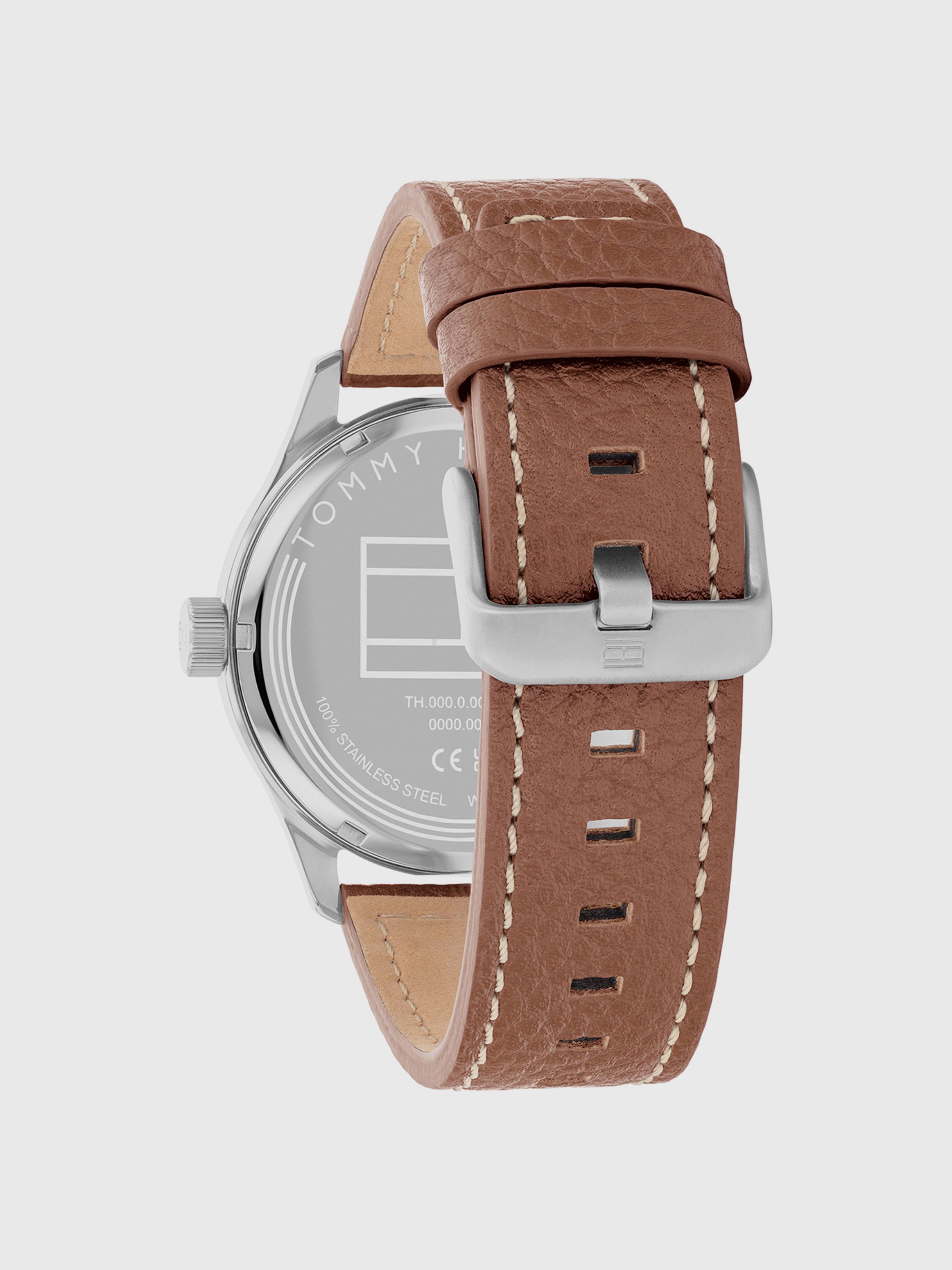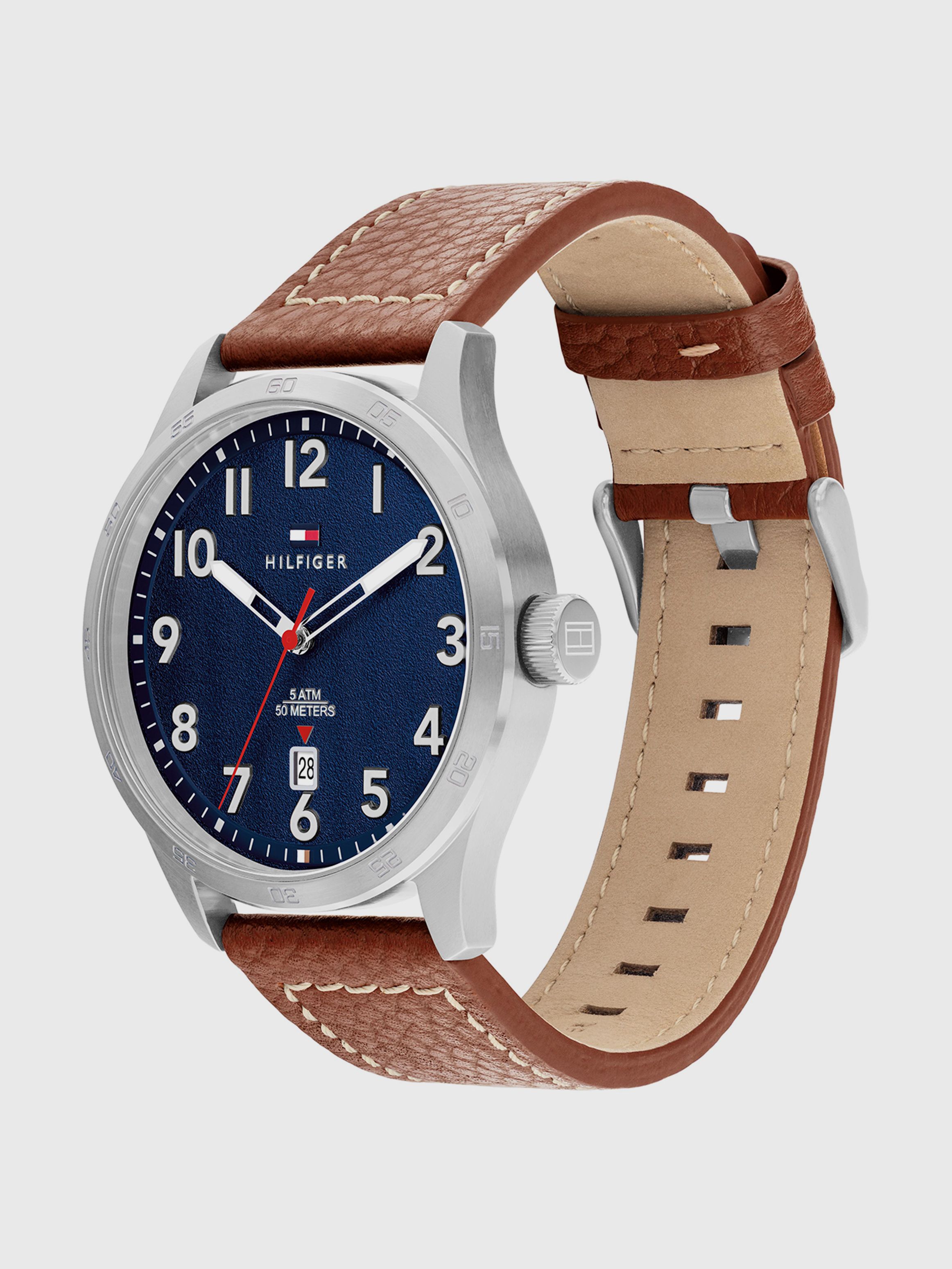 For the outdoor explorer, and weekend adventurer, this casual watch has a rugged texture dial and TH branding elements throughout for a classic appeal. Form meets function with the 3-hand movement that sweeps across the date window to keep you on time. Link bracelets, leather straps, and Cordura straps. 3H, 43MM