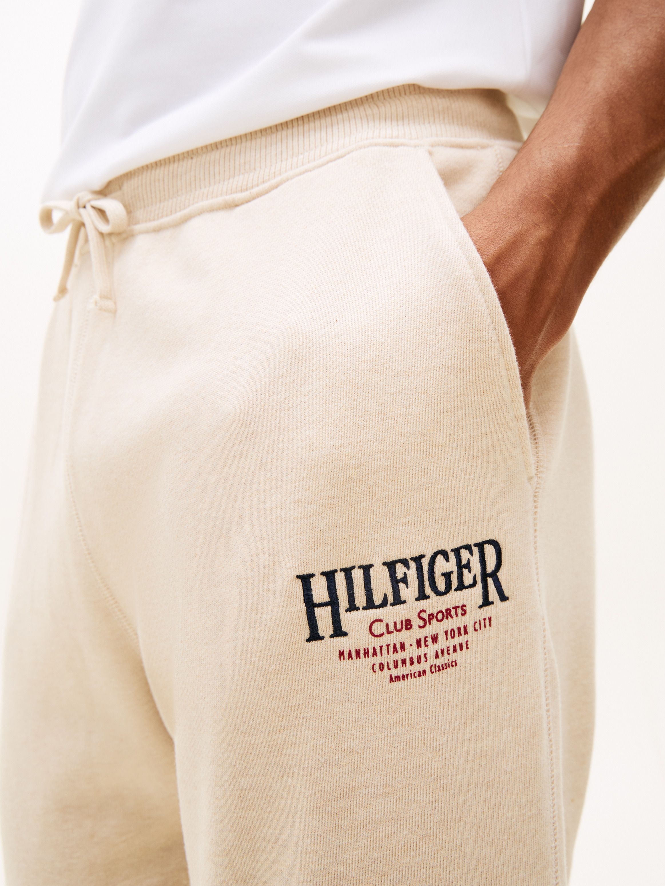 • Pure cotton terry • Drawstring elasticated waist • Two waist angled slip pockets • Tommy Hilfiger NYC logo embroidery on thigh • Tommy Hilfiger branding