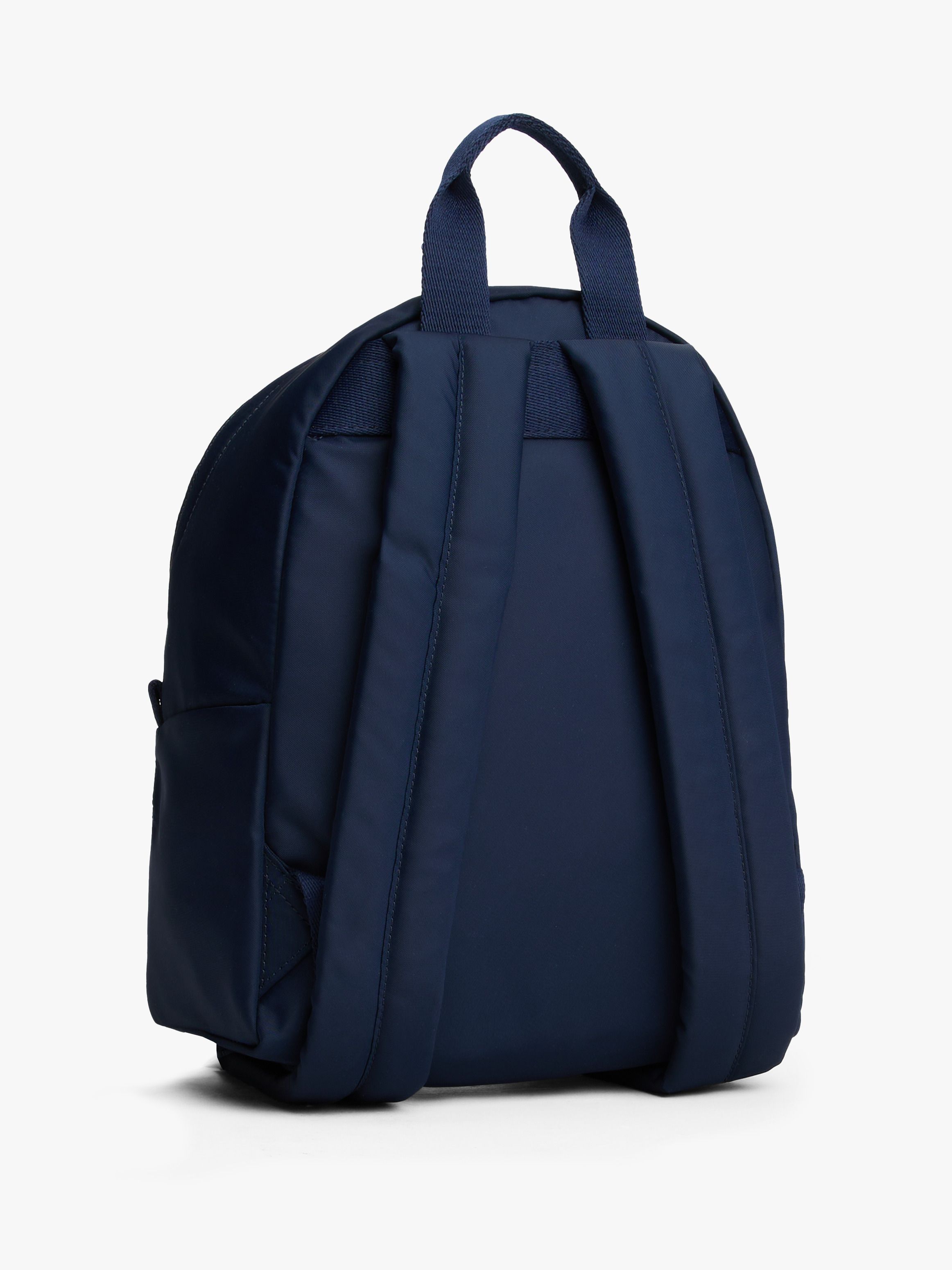 • Smooth finish • Dome design • Zip closure • One top handle • Adjustable padded shoulder straps • One main compartment • One exterior zipped pocket • Tommy Jeans repeat logo on straps • Tommy badge debossed on zip pull • Tommy badge on front pocket • Tommy Jeans branding