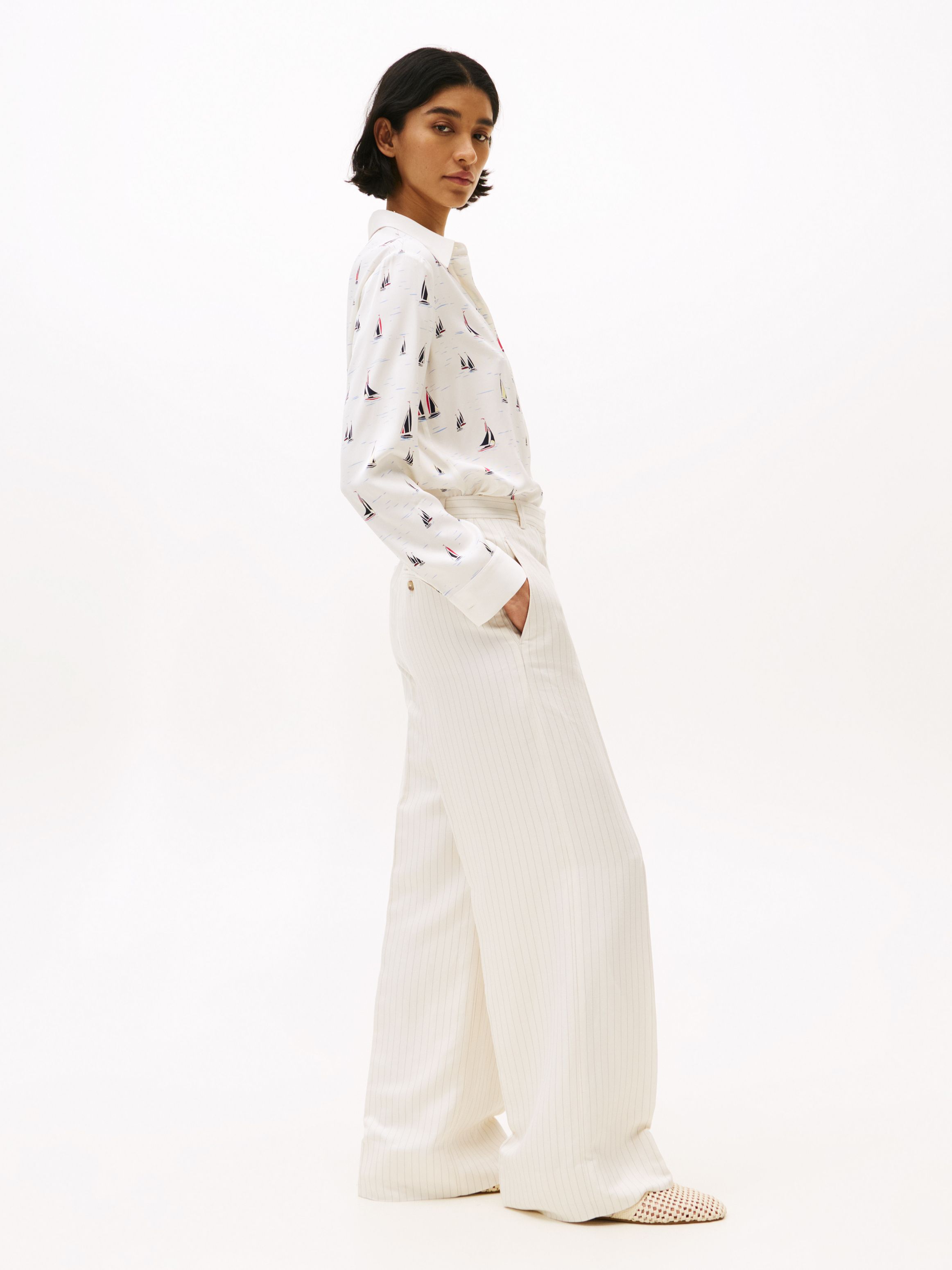 • Linen blend • Zip with concealed hook closure • Pressed front and back creases • Two back buttoned welt pockets • Tommy Hilfiger branding • Tommy Hilfiger metal flag on back